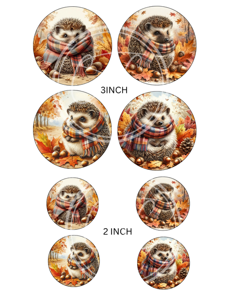Fall Hedgehog Printable Ornament/Tag Circles Bundle 4', 3" 2"