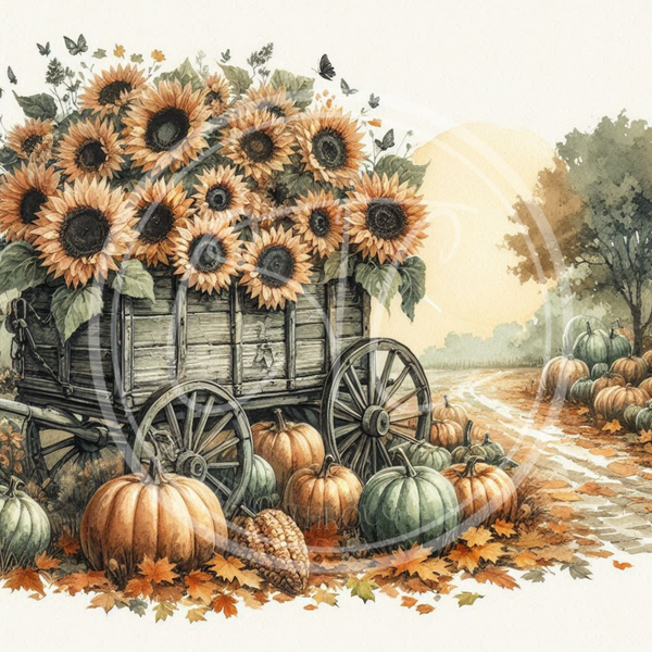 Fall Sunflower Wagon Printable Bundle Minis 4x4