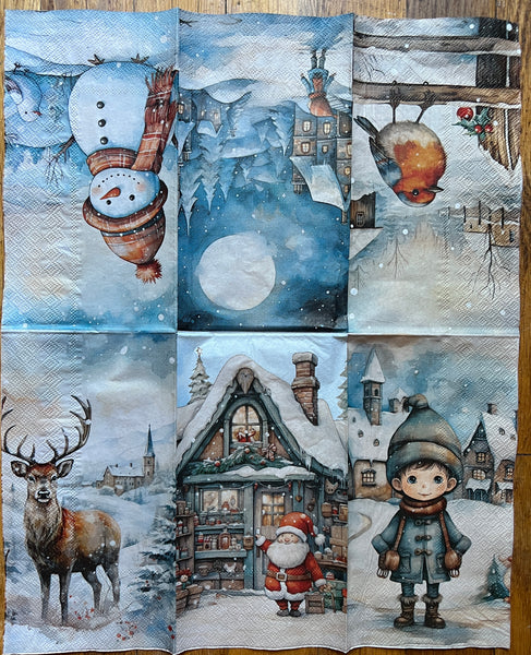 21 Christmas Napkins, Great For Decoupage. You will receive the Christmas napkins shown, 1 of each. In the pictures I have opened the ones that have more than 1 design one them.