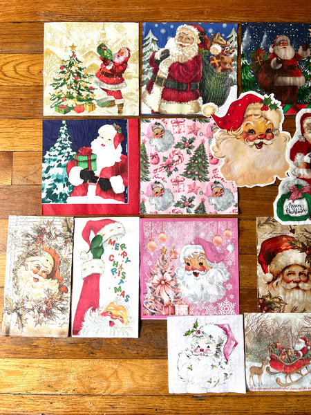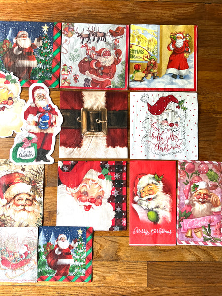 Set of 21 Santa napkins, 1 of each. Great for decoupage! FREE SHIPPING!